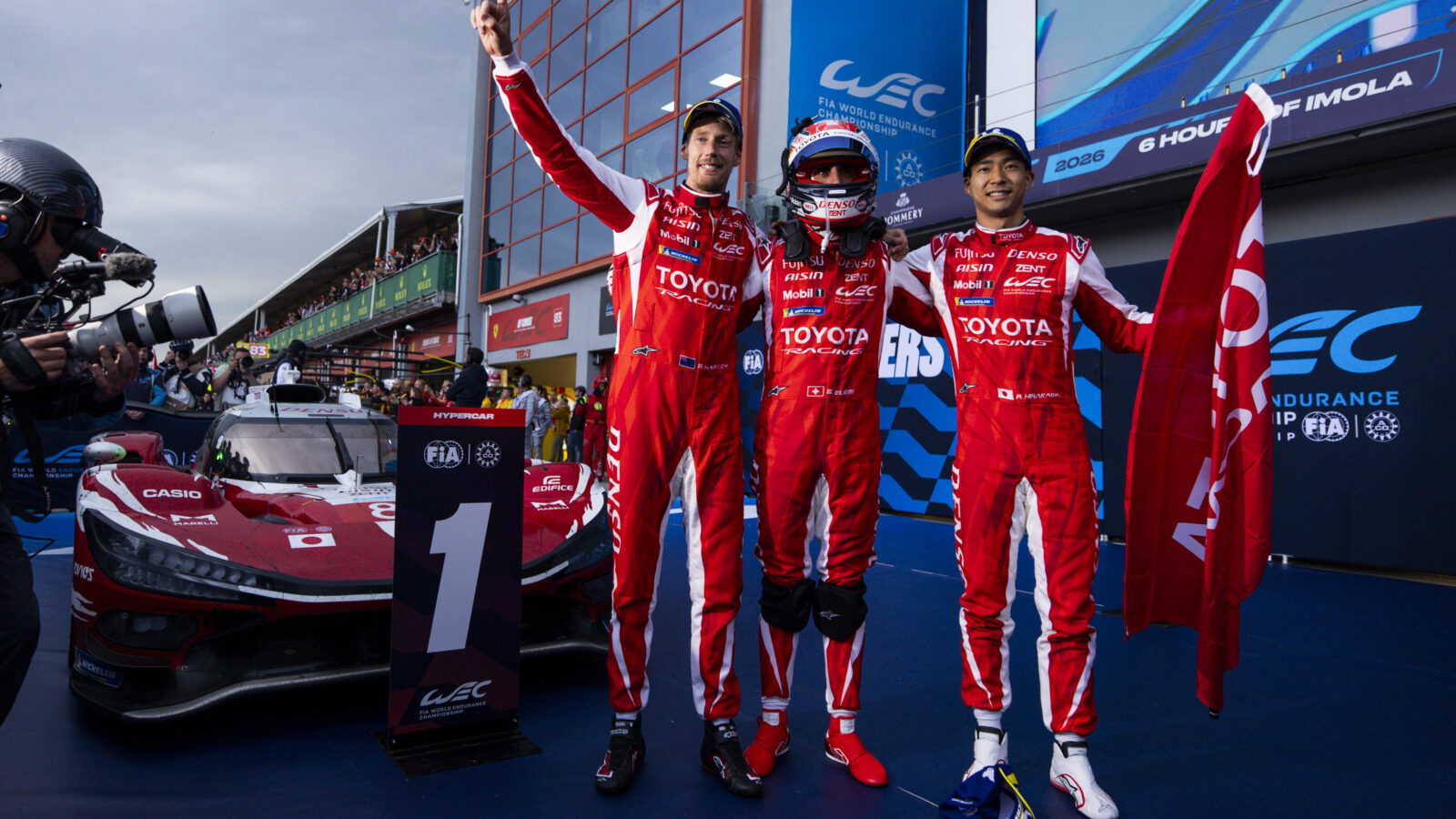 Der Toyota Gazoo Racing GR010 Hybrid Hypercar mit der Startnummer 7 von Kamui Kobayashi, Mike Conway und Nyck de Vries hat das dramatische und actionreiche 6-Stunden-Rennen von Imola, die zweite Runde der FIA World Endurance Championship, gewonnen.